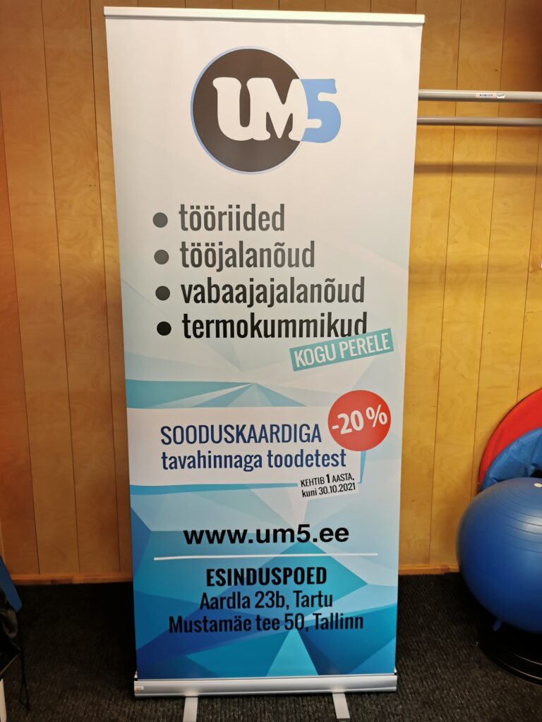 Roll-up bänner on kompaktne ja esinduslik lahendus messidele, esitlustele ja müügipindadele. See on kiirelt paigaldatav ning loob professionaalse ja selge visuaalse kohalolu igas ruumis.